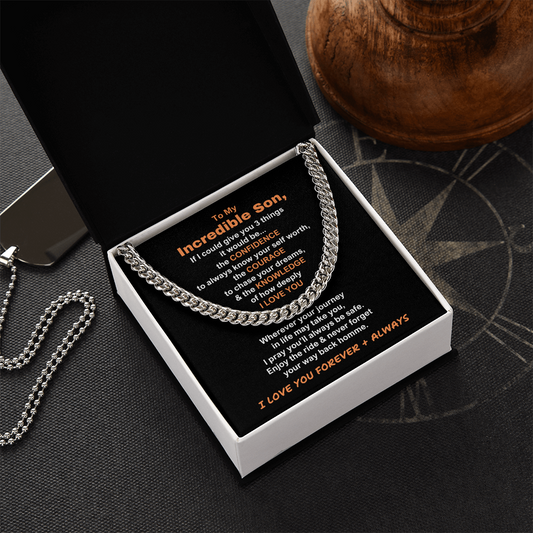 Gift For Son B "To my Incredible Son..." Cuban Link Chain Necklace