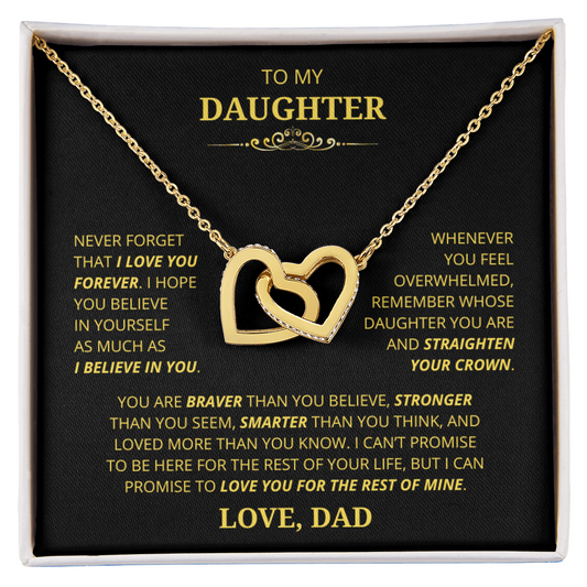 Gift for Daughter "Never forget that I love you..." Interlocking Hearts Necklace
