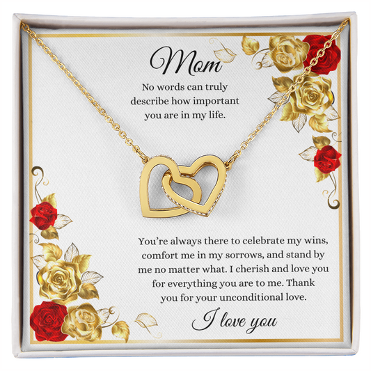 Gift for Mom "Thank you for your unconditional love..." Interlocking Hearts Necklace