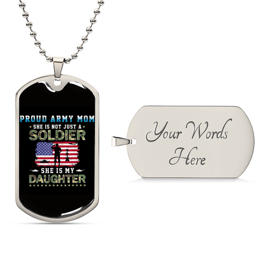 Gift for Daughter "She is not just a soldier, She is my Daughter..." Engraved Graphic Dog Tag Necklace