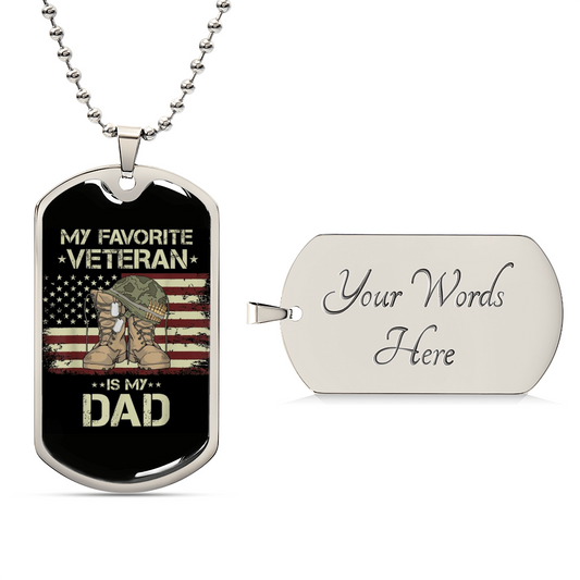 "My favorite veteran is my Dad..." Engraved Graphic Dog Tag Necklace Gift For Veteran Dad