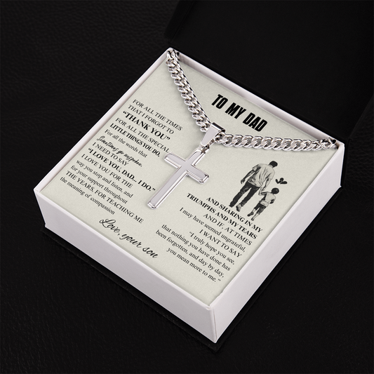 Gif for Dad "For All the Times That I Forgot to Thank You" Engraved Artisan Cross Necklace