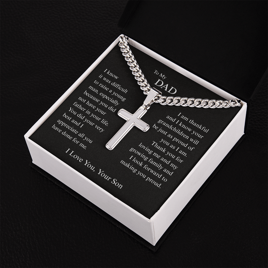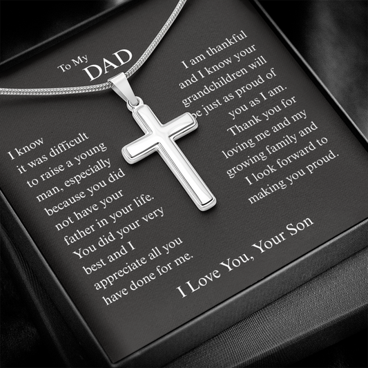 Gift for Dad "I Know It Wasn't Easy Raising a Man Like Me…" Engraved Artisan Cross Necklace