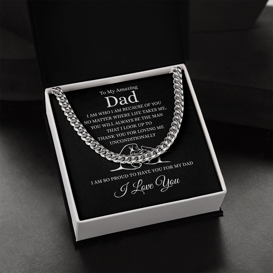 Gift for Dad "To My Amazing Dad, I am so proud to have you for my dad...." Cuban Link Chain Necklace