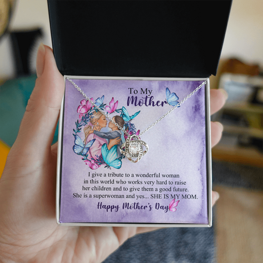 Gift for Mother's day " She Is My Mom" Love Knot Necklace