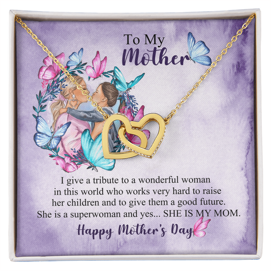 Gift for Mother's day "She Is My Mom" Interlocking Hearts Necklace