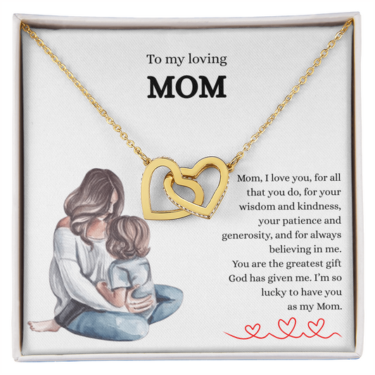 Gift for Mom "I'm so lucky to have you as my Mom..." Interlocking Hearts Necklace