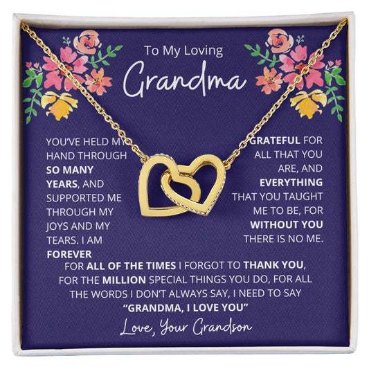 Gift for Grandmother "Thank you for being such an amazing Grandmother..." Interlocking Hearts Necklace